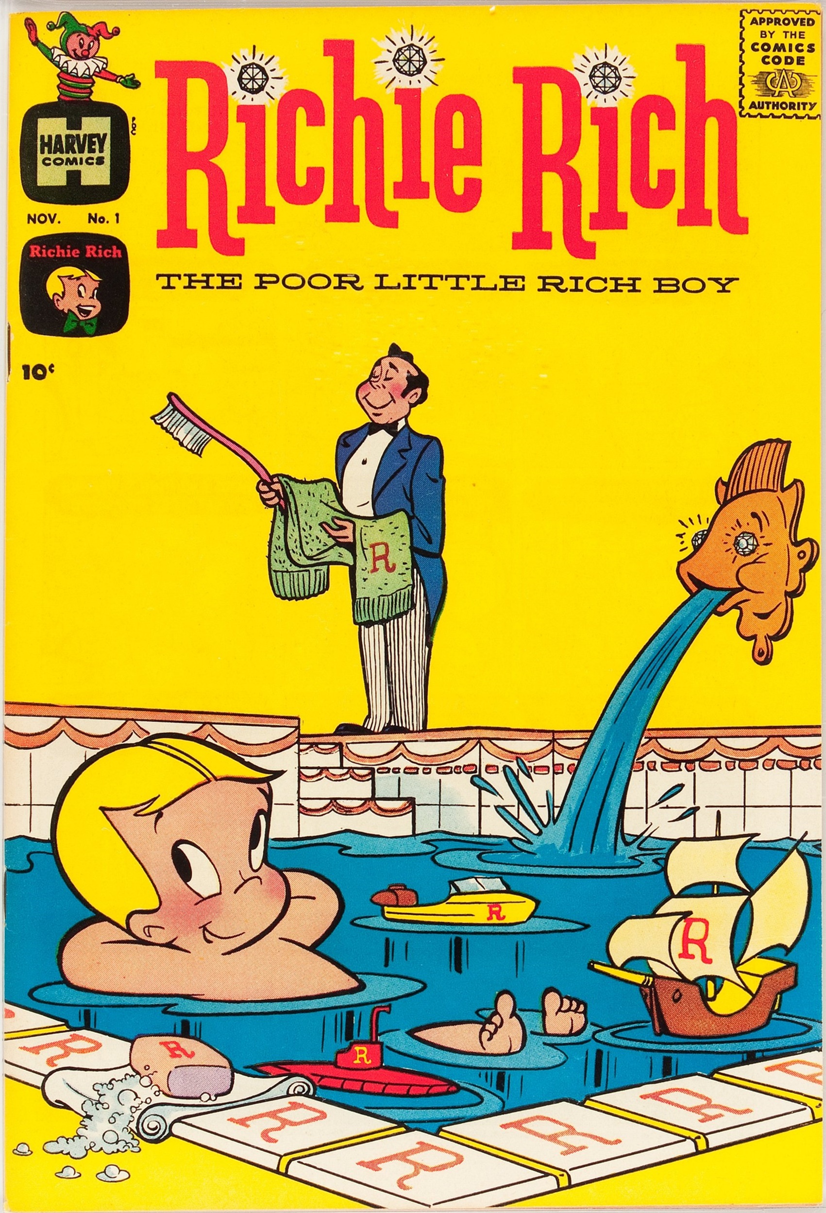 first of many Richie Rich titles. Richie Rich went 254 issues ending in 1990. Like some other Harvey characters, the title went