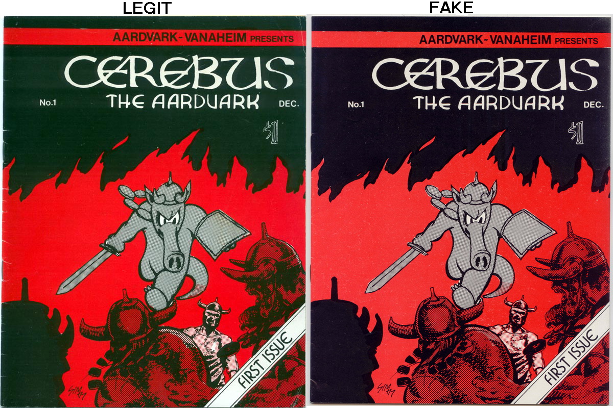 So if you have a very good-looking Cerebus #1 it may be a counterfeit. It's sad to say but there are counterfeit comics out there. Especially for high value independent comics. If you are thinking of buying one, check around to see if counterfeits were made (and how to detect them) before doing the purchase.